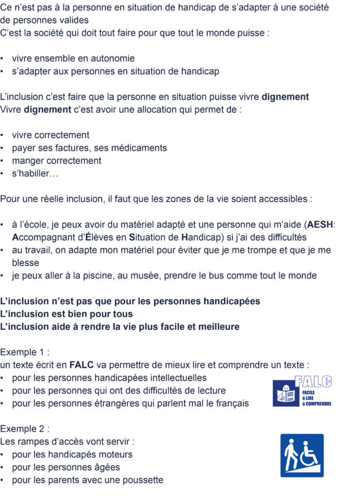 Mais que veut dire concrètement le terme d’« Inclusion » ? Quel est l’avis de l’association sur ce concept d’inclusion ?