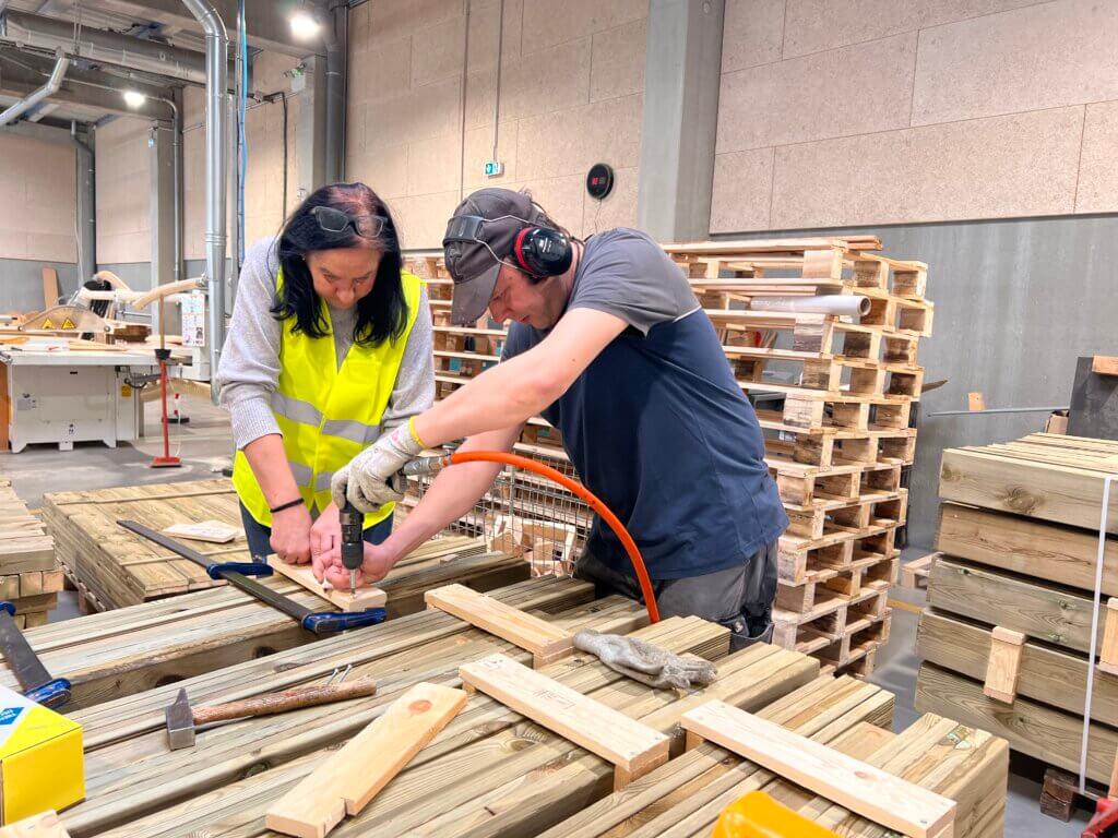 Grâce au projet « Vis ma vie », Céline TUBACKI, assistante RH, a eu l’opportunité de découvrir le quotidien de Majorie HUYGEVELDE, monitrice d’atelier en menuiserie à l’ESAT du Raquet. Une immersion enrichissante qui lui a permis d’explorer l’organisation du travail, l’accompagnement des travailleurs et la gestion de la production.